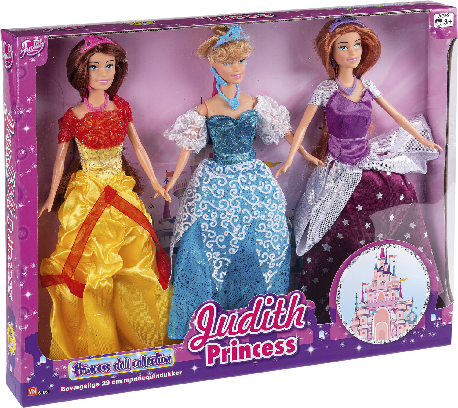 3 stk Judith prinsesser 29 cm bevægelige mannequindukker i flotte kjoler
