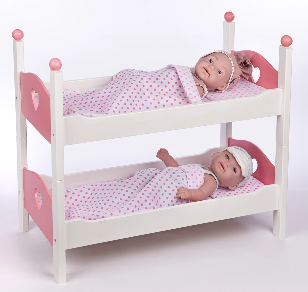 Etageseng i trę 51x43x27 cm. Passer til 30-40 cm dukker. Uden dukke