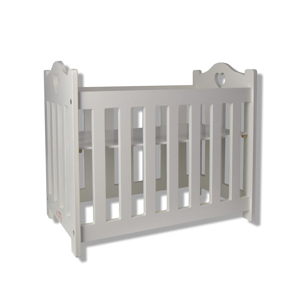 Lad din dukke sove godt! I denne tremmeseng kan din dukke sove trygt og godt hele natten. Egner sig til dukker op til 50 cm. Sengen måler 49 x 42 x 30 cm og kan indstilles i to forskellige hųjder. Tremmesengen er lavet i hvidmalet FSC-certificeret trę med