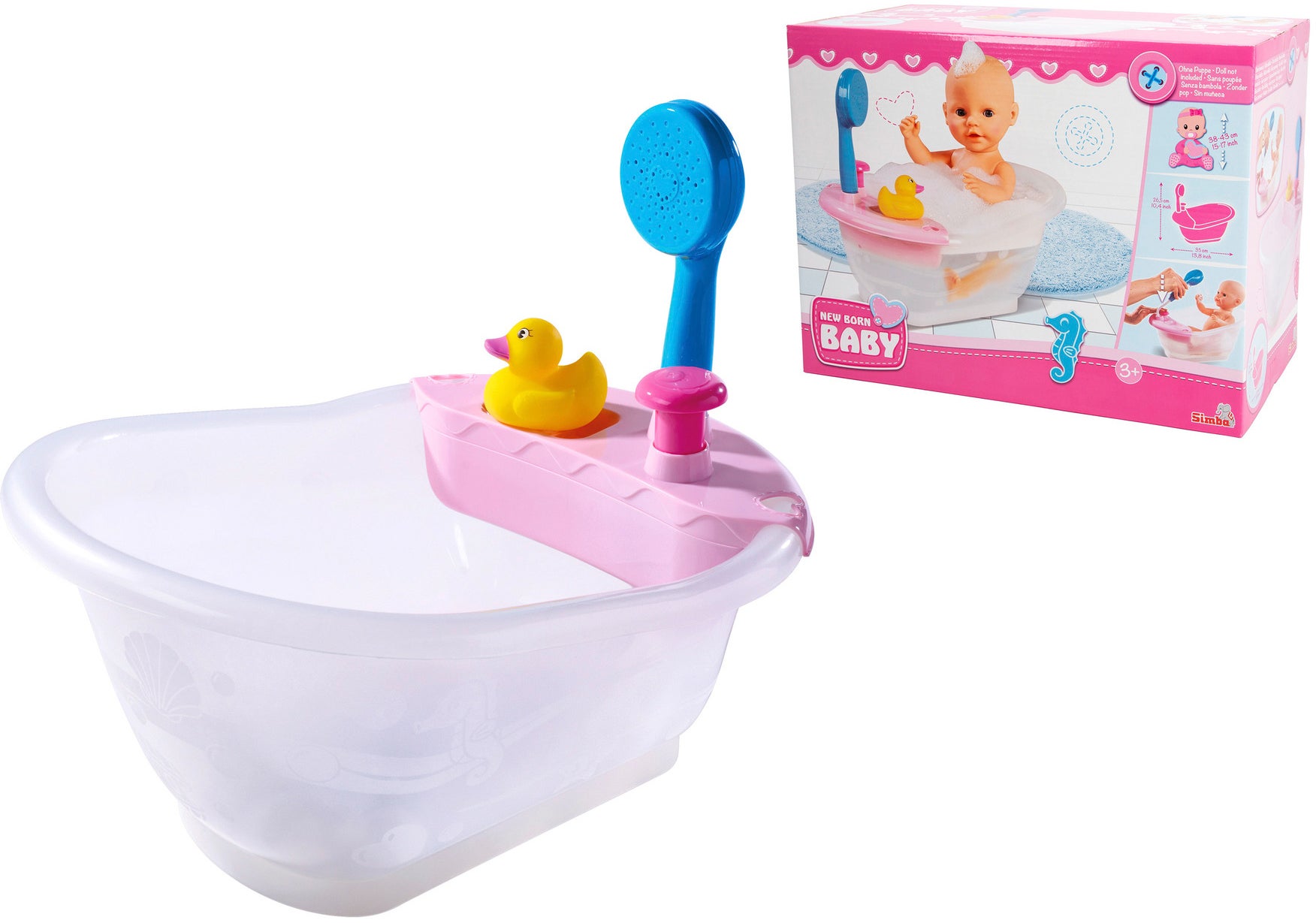 Badekar fra New Born Baby til dukken med en praktisk bruser. Perfekt til timevis af fantasifuld leg. - Indeholder: 1 badekar, 1 bruser med en pumpefunktion, 1 gummiand. - Passer til dukker i størrelsen 38-43 cm. - Badekarret har en bruser med pumpefunktion. - Dukke medfølger ikke. - Udvikler fantasien. - CE-mærket. - Anbefalet alder: Fra 3 år. - Plastik.