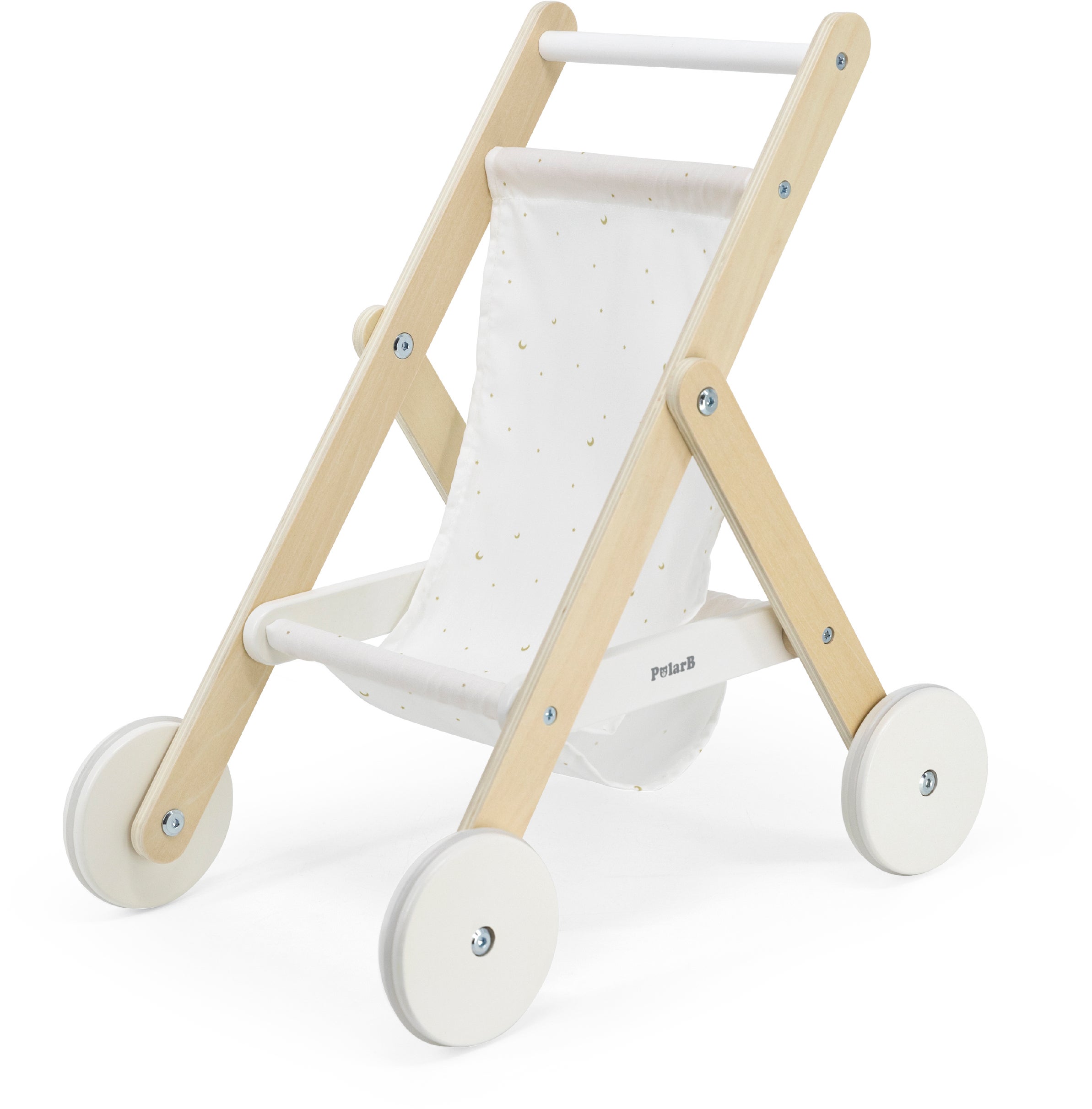 Dukkevogn i trę fra PolarB med et stilfuldt design. Perfekt til mange timers sjov. - Barnevogn til dukker og bamser. - Perfekt til rolleleg. - Passer til dukker op til 38 cm. - Opmuntrer til både social og individuel leg. - Blųde, stųjsvage gummihjul der ikke ridser gulvet. - CE-męrket. - Anbefalet alder: Fra 3 år. - Trę, stof.