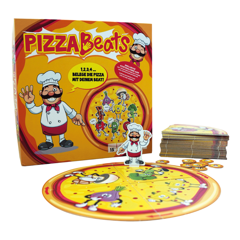 Broccolien er et tramp, peberfrugten er et knips, og sådan er det hele vejen igennem. Det kræver måske lidt mere forklaring at fortælle, hvad Pizza Beats handler om, men når I pakker det ud, er det meget enkelt.Det lover vi.I skal downloade den gratis app, der hører til spillet, for der angiver pizzakokken Luigi det tempo, I skal holde for at vinde spillet.Der er flere forskellige sværhedsgrader, så I kan gøre det sværere, efterhånden som rytmesansen kommer i form. I lægger forskelligt pizzafyld på pizzaen, og så tæller hver slags fyld for enten et knips, et råb, et klap, tromme, tramp eller andre lyde. I skal så prøve at følge rytmen med de rigtige bevægelser.Spillet kan spilles af bare 1 spiller eller af 50 spillere i gruppe-udgaven, hvor alle spillere skal følge rytmen sammen.Fra 4 år.