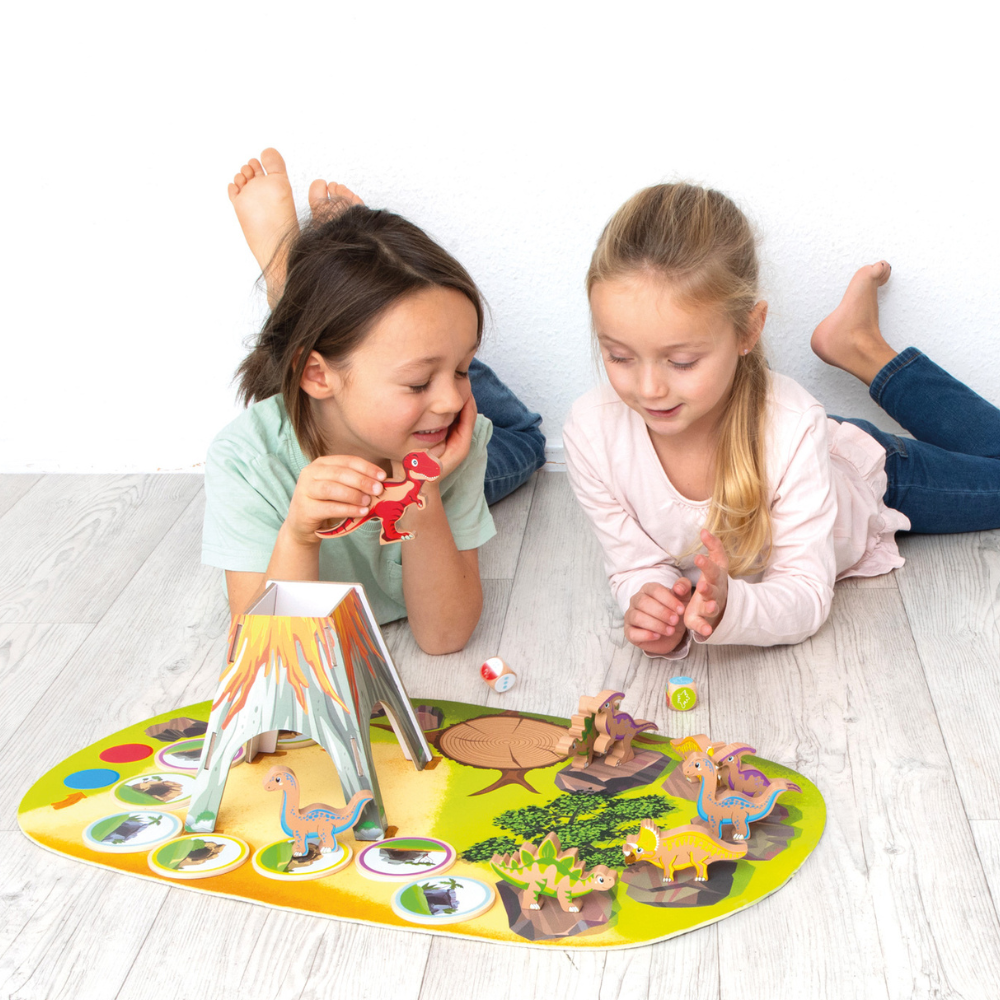 Alletiders spil at have på hylden i skoler og institutioner, for det er fremstillet af solide materialer og med store figurer, som ikke så nemt bliver væk. Først skal man bygge vulkanen, og så gælder det om at løbe hurtigere end den farlige T-rex ved hjælp af terninger.Køb det. Mere er der ikke at sige.Fra 4 år og for 2-8 spillere.