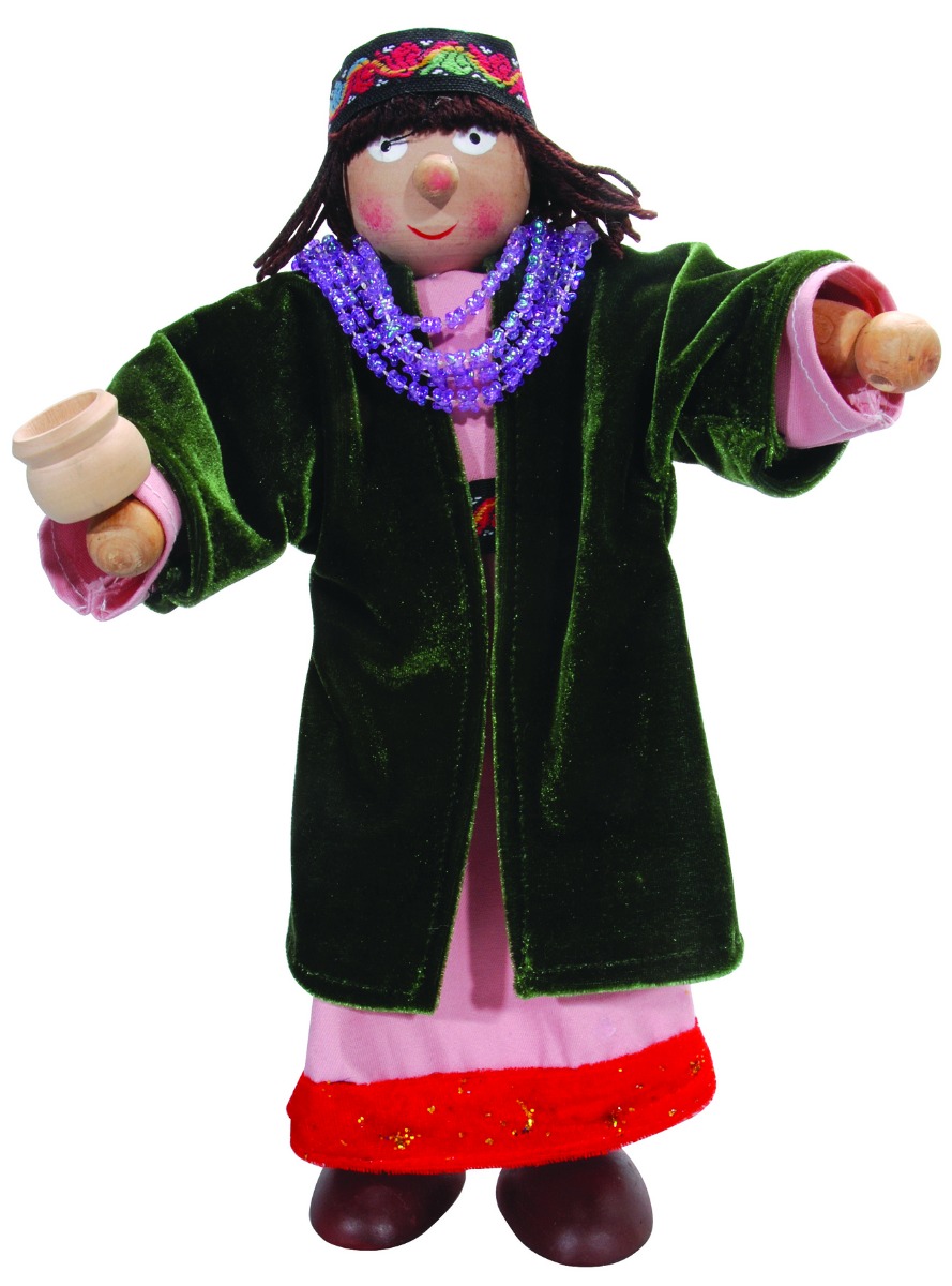 Stor bøjelig dukke med røde kinder, et nærværende udtryk i ansigtet og fin lille næse. Winzling dukker er af høj kvalitet og tåler leg i børnehaven eller mange genfortællinger af gode bibelhistorier for små og store.Dukken her er Kasper, en af de tre vise mænd, som var stjernetydere og kom fra Østerland, søgte efter den nyfødte konge af jøderne og havde gaver med til Jesus. Det var Kasper, der overbeviste de to andre om, at det lille barn i den primitive stald virkelig var den nyfødte kongesøn.Den fortælling bliver straks mere levende og spændende at høre med de fine bibelske dukker.Også i dag er vi fascineret af stjernerne, også i dag kommer vi med gaver, når nogen har fødselsdag, og også i dag er det vigtigt at kunne se det særlige på steder eller hos andre mennesker, hvor man ikke forventer det. De tre vise mænd forærede jesusbarnet gaver, som var så mægtig fine, at man formoder, at de tre mænd var konger. De kaldes derfor også for Hellig tre Konger.Dukken er god til både fortællinger fra kristendommen og til rolleleg.