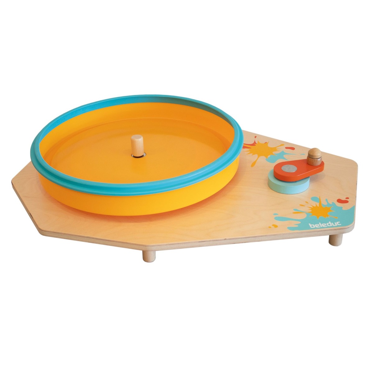 Her får du en robust og klassisk farveslynge.Hvad sker der, når man drejer noget rigtig hurtigt rundt? Hvad har en vaskemaskine egentlig med at gøre med tempera-maling?Hvordan kan du på en sjov måde demonstrere fysiske kræfter for børn og samtidig hjælpe dem til at lykkes med at lave fine kunstværker?Svaret er: en farveslynge. Du kender den måske fra din barndom. Man putter et rundt stykke papir i farveslyngen, og så udpeger man en dygtig hjælper, der skal dreje på håndsvinget. Papiret kan du købe hos os.Så snurrer slyngen papiret rundt, og imens skal I så hælde eller dryppe tempera-maling på papiret. Malingen finder du her. Der sker virkelig ting og sager, for centrifugalkraften presser malingen udad.Resultatet er virkelig fine, abstrakte motiver, og i tilgift får dit barn en praktisk demonstration af, hvordan det mon er at være et vådt lagen i vaskemaskinen, når drejningerne presser vandet ud af lagenet under centrifugeringen.Tempera-maling er noget andet en akryl-maling. Begge typer anvendes ofte til børns kreative projekter og er godkendt til børn over 3 år.Kender du Tempura-maling?Hvor akrylmaling bliver til en slags plastik, når det tørrer, så er den vandbaserede tempera-maling en type maling, der tørrer, så snart vandet i malingen er fordampet, og som bliver en en helt tynd, mat farve. Man kan ikke pille et lag tørret maling af, ligesom man ofte kan med akryl-maling. Farven lægger sig som et tørt pudder, og den kan genaktiveres som maling ved at spraye med vand.Tempera-maling består af farvepigment, vand og en form for stivelse.Til farveslynge-arbejde er den netop temperas evne til at tørre hurtigt og kunne fortyndes med vand, der gør den velegnet.