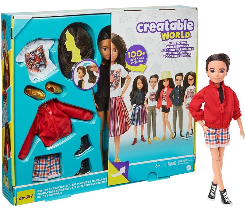Creatable World ™ inspirerer alle børn til at blive kreative med dukker - Deluxe Character Kits giver et blankt lærred sammen med stykkerne for at skabe unikke karakterer igen og igen! Den 30 cm dukke bærer tank og shorts, har en kort klipning og ko