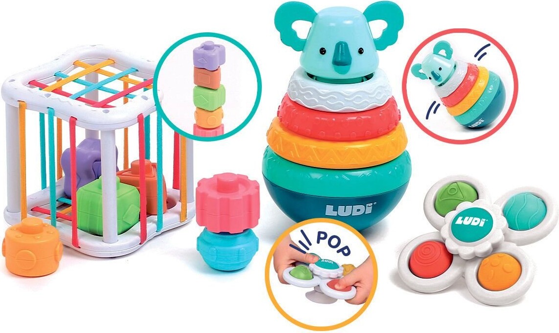 Ludi - Legesæt Med Aktivitetslegetøj - Puttekasse, Tårn Og Spinner