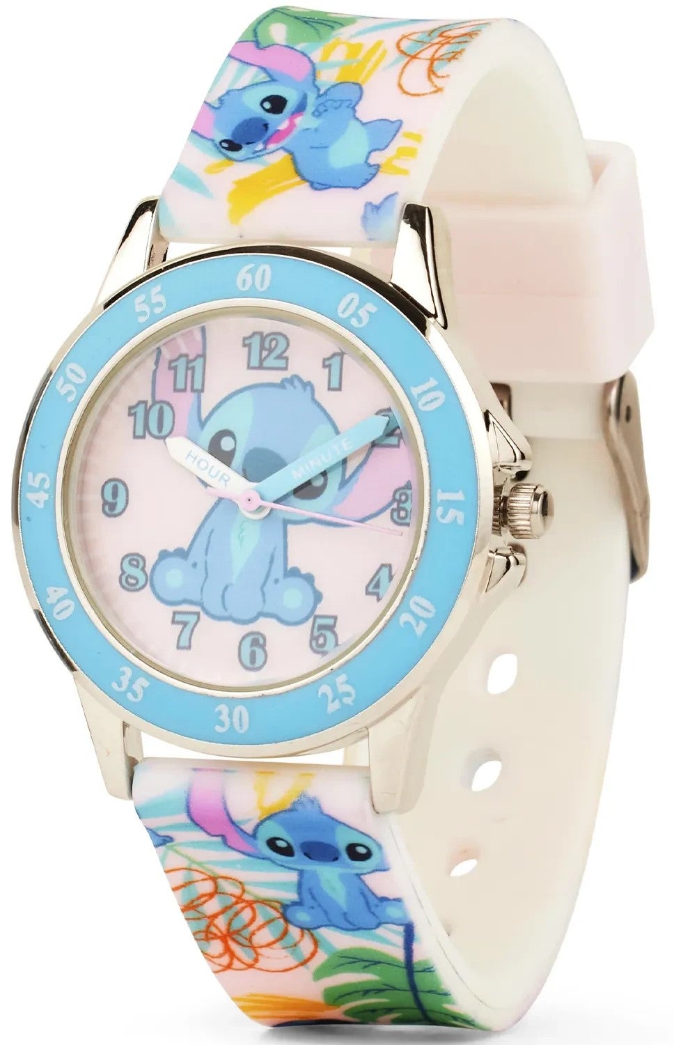 Time Teacher ur fra Disney Lilo & Stitch med visere, der er lette at forstå. Perfekt til sjov indlæring. - Urskive af plexiglas. - Silikonerem. - Vandafvisende. - Kvartsur. - CE-mærket. - Rustfrit stål, silikone. - Batterier medfølger.
