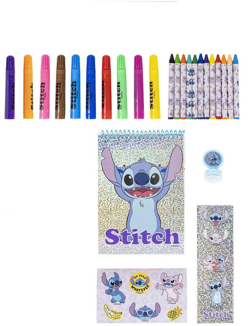 Malesæt fra Disney Lilo & Stitch med et sødt design med en masse spændende tilbehør. Perfekt til skolestart. - Indeholder: 10 filttusser, 12 farvekridt, 1 notesblok, 2 klistermærkeark, 1 lineal. - Let opbevaring. - Let at tage med sig. - Fungerer lige så godt hjemme som til skolen! - CE-mærket. - Anbefalet alder: Fra 2 år.