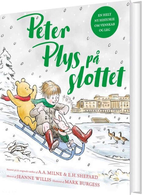 Peter Plys og Jacob tager toget ind til byen. Først regner det, men så begynder det at sne. De kommer forbi et smukt slot, og her får de lov til at lege i slotsparken, de kælker og har det...