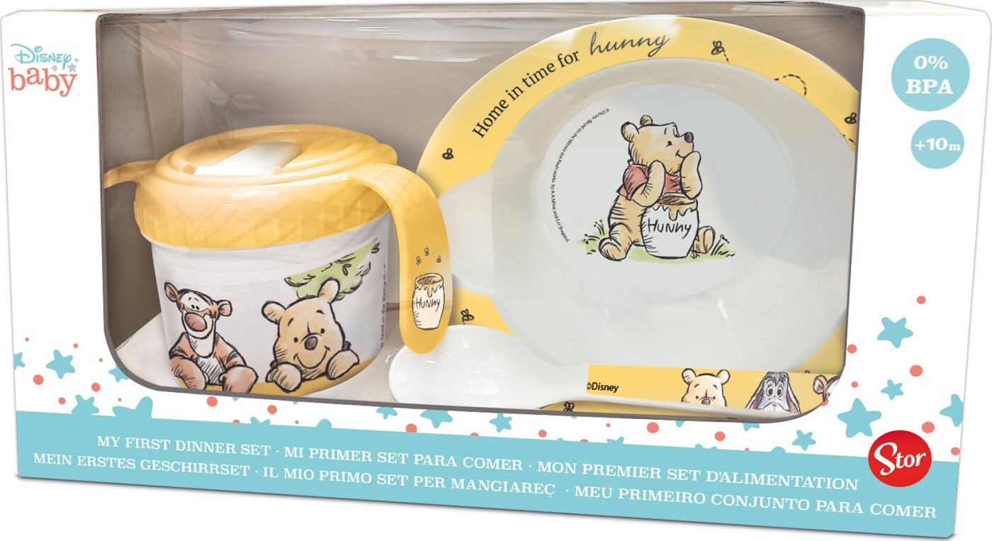 Uanset om det er til fødselsdag, dåb eller bare som en kærlig gave, vil dette Stor - Baby 3-stk. Gaveæske Sæt være et hit. Giv dit barn en sjov måde at nyde deres måltider på og lad dem træde ind i den vidunderlige verden af Peter Plys.