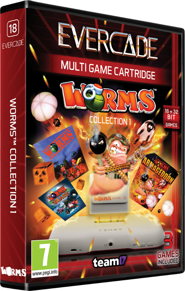 Worms Collection 1 Cartridge til Evercade inkluderer følgende titler fra Team 17s verdensberømte franchise. Worms, Worms Armageddon og Worms Blast. Cartridgen leveres i et forbløffende fysisk etui...