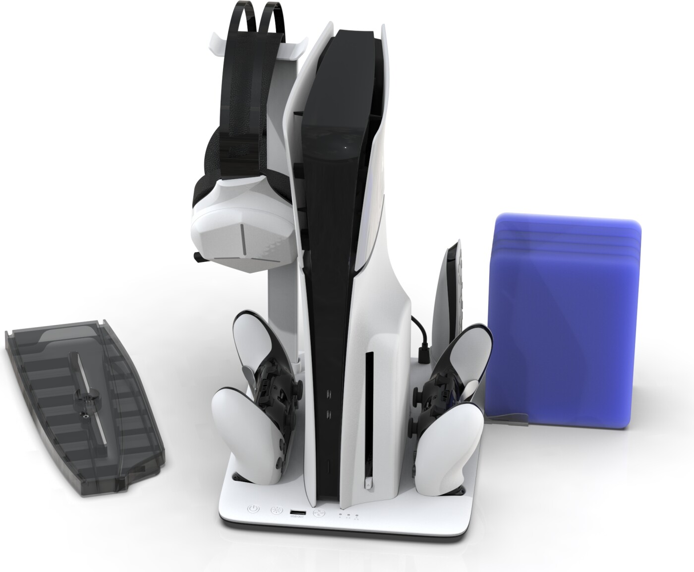 Stilfuldt design komplimenterer PS5-konsollen perfekt. Diskret platform med drop and charge...