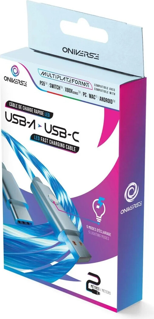 The Oniverse USB-C Quick Charge Cable is your ultimate solution for efficient charging and data transfer. Measuring an impressive 2 meters in length, this white cable offers ample reach, making it perfect for use at home, in the office, or on the go. Designed with versatility in mind, it is compatible with a range of devices, including smartphones, tablets, and laptops that support USB-C connections. This cable stands out with its quick charge capabilities, allowing you to power up your devices rapidly without compromising on safety. The built-in LED indicator provides a clear visual cue of the charging status, letting you know when your device is ready to go. No more guessing if your device is charging or not! Constructed from high-quality materials, the Oniverse cable ensures durability and longevity, reducing the risk of wear and tear over time. Its sleek white design complements any setup, making it not just a functional accessory but also a stylish one. Whether you are a busy professional needing reliable connectivity for your devices or a student who requires speedy charging between classes, the Oniverse USB-C Quick Charge Cable is the perfect companion. Say goodbye to tangled cords with its flexible design, and embrace the convenience of fast charging and data transfer with this essential tech accessory.