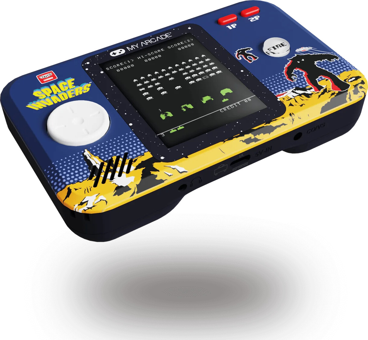 My Arcade er kendt for sin høje kvalitet og holdbare produkter. Space Invaders Pocket Player Pro er ingen undtagelse, bygget til at modstå timevis af spil og sjov. Med robuste materialer og et ergonomisk design, kan du spille komfortabelt hvor som helst.