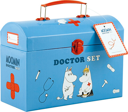 Mumins lægetaske med et ægte stetoskop. Den søde taske indeholder et ægte stetoskop, så barnet kan lytte til forældrenes hjerteslag. Lægesættet omfatter også hårnet, bomuldshandsker,...