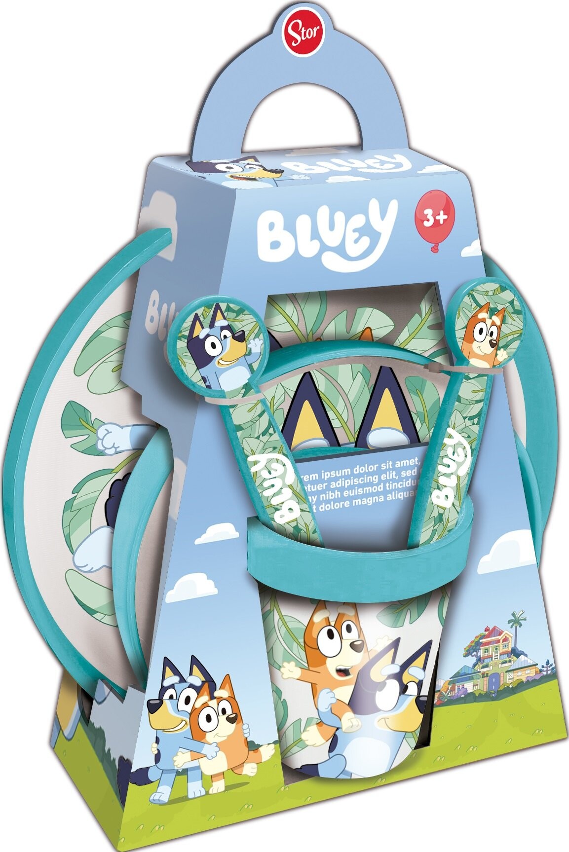 Væk dit barns appetit med dette søde og praktiske Bluey frokostsæt fra Stor. Sættet inkluderer en skål, tallerken, et glas, gaffel og en ske med et skønt Bluey design. Den non-slip base holder...