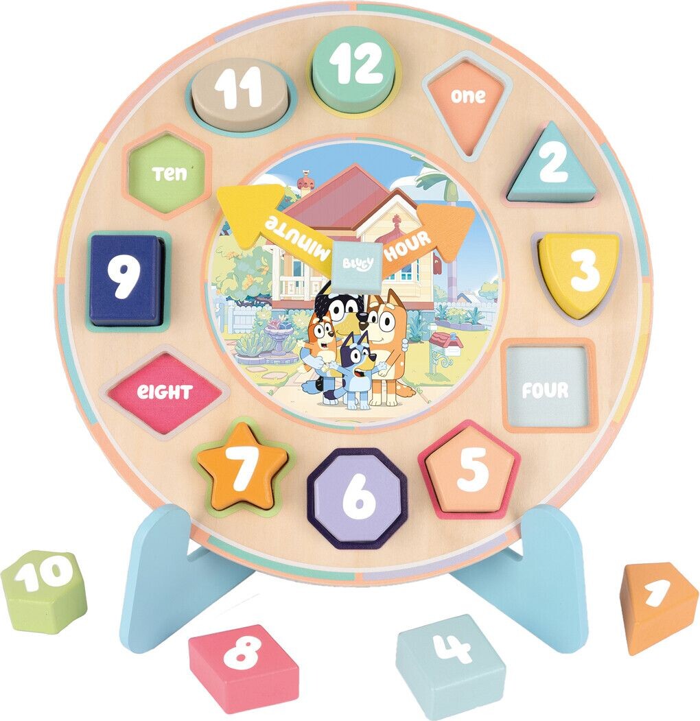Bluey Puslespil - Lær Klokken Ur - Træ - 12 Brikker