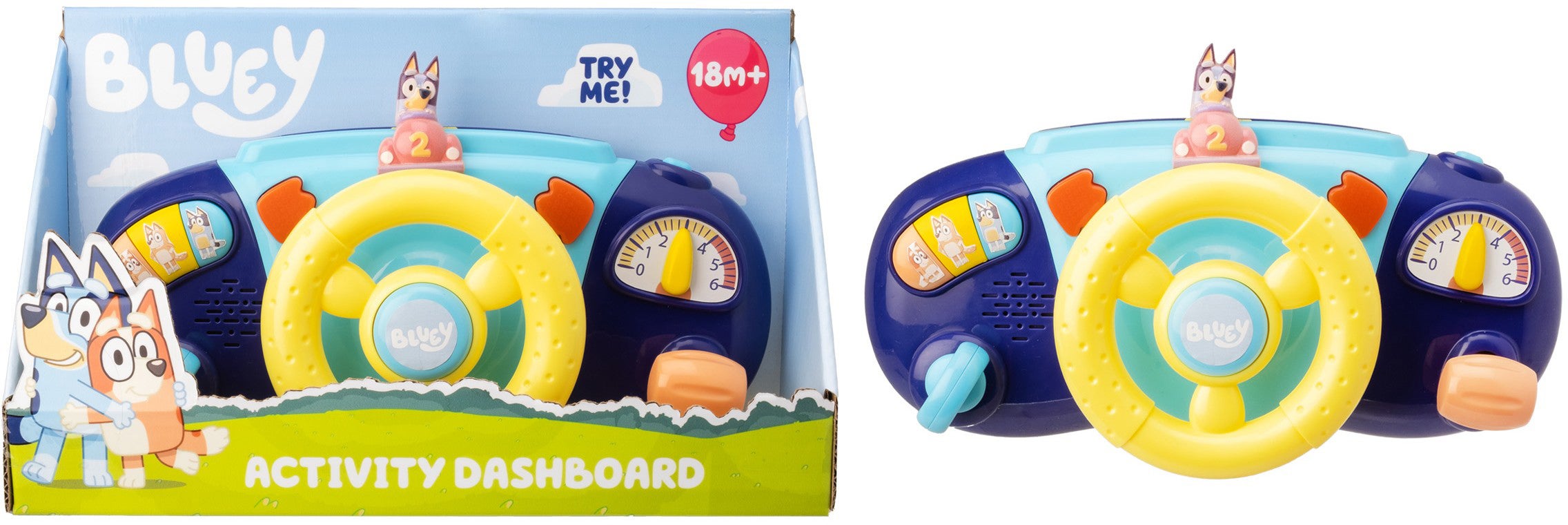 Rat fra Bluey med masser af spændende funktioner. Perfekt til mange timers sjov. - Rat. - Tændingsnøgle. - Fungerende blinklys. - Gearstang med kliklyde. - Lydeffekter. - CE-mærket. - Anbefalet alder: Fra 6 måneder. - Plastik. - Batterier medfølger.