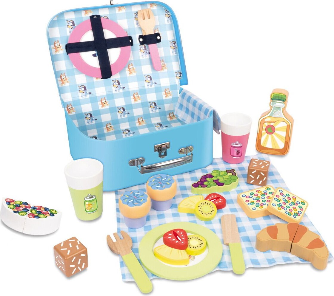 Selv på grå og regnfulde dage kan picnictiden fortsætte med dette Bluey Wooden Picnic Set....